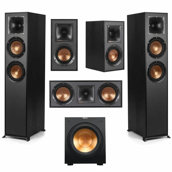 - Complete 5.1 Surround Sound System: Includes 2x R-620F floorstanding speakers, R-12SW subwoofer, R-52C center speaker, and 2x R-41M bookshelf speakers