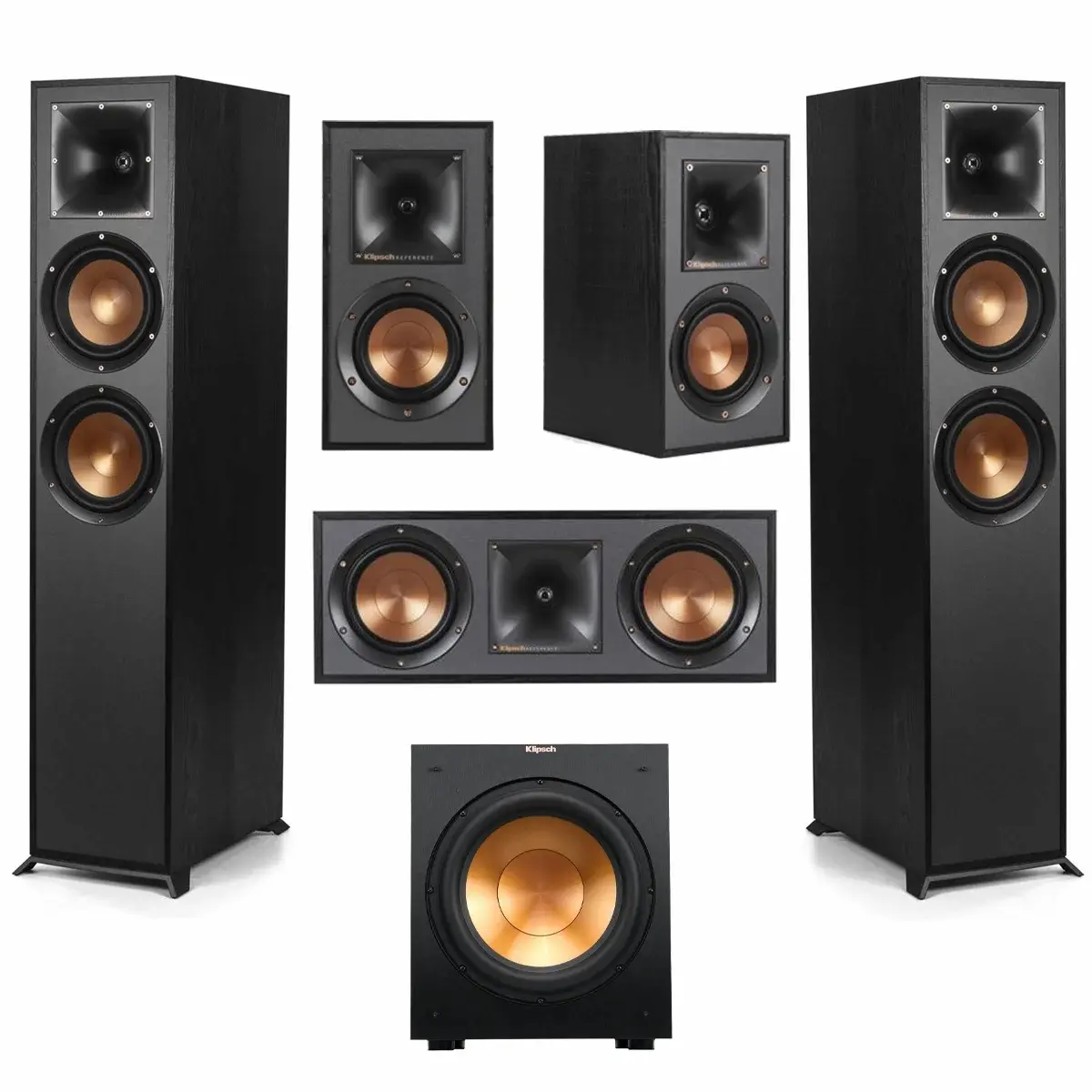 Bring the thrill of cinematic sound into your home with the Klipsch Reference 5.1 Home Theater Pack. This system is built for those who want bold, clear audio and a real sense of immersion for movies, music, or gaming. You get everything you need: two R-620F floorstanding speakers, one powerful R-12SW subwoofer, an R-52C center channel, and a pair of R-41M bookshelf speakers. Magnetic grilles, injection-molded feet, screws, and a solid 5-year limited warranty are all included.